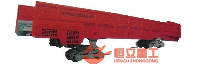 梭式礦車式地下煤礦巖巷、非煤礦主巷、非煤礦主巷掘進(jìn)時(shí)的高效出渣設(shè)備,同時(shí)也可作為大型儲矸設(shè)備,現(xiàn)已有從4-40立方等多個(gè)規(guī)格。它主要由裝有運(yùn)輸機(jī)的槽形車廂和行走部分組成,車體放在兩個(gè)轉(zhuǎn)向架上,在車廂底板裝有刮板運(yùn)輸機(jī),采用電動動力將矸石從車廂的裝渣端裝人,連續(xù)轉(zhuǎn)動刮板運(yùn)輸機(jī)自動將矸石移動到卸載端,使整個(gè)礦車裝滿,開啟運(yùn)輸機(jī)即可將矸石自動卸下。